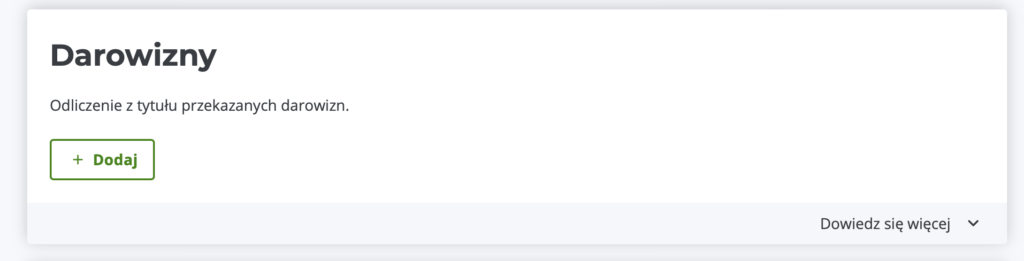 4. Na liście dostępnych ulg znajdź pozycję “Darowizny” i kliknij Dodaj.