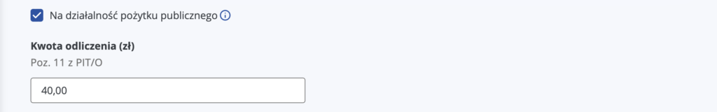 5. W kolejnym kroku wybierz rodzaj darowizny, którą chcesz odliczyć. Jeśli wspierałeś Fundację PCPM, będzie to darowizna na działalność pożytku publicznego. W polu oznaczonym jako poz. 11 z formularza PIT/O wpisz łączną kwotę darowizn przekazanych w danym roku na wszystkie organizacje pożytku publicznego, które chcesz odliczyć od dochodu.